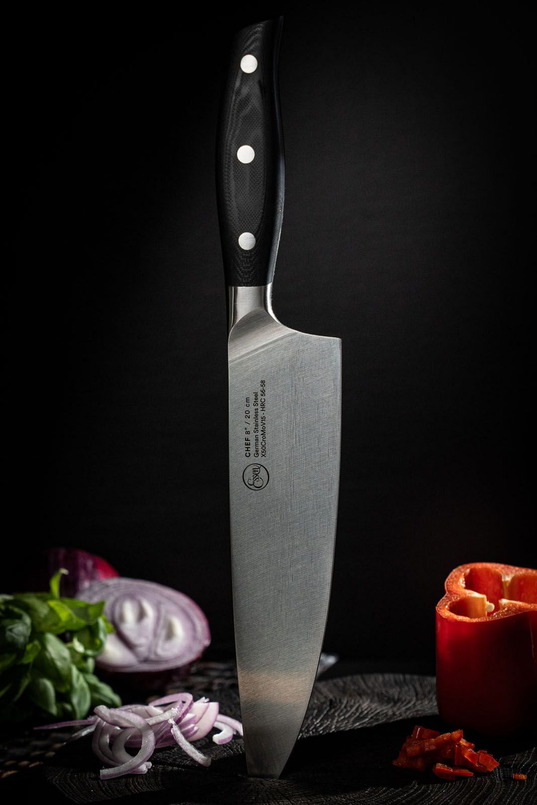 El cuchillo Chef se distingue por su combinación de robustez y precisión, ideal para cualquier tarea culinaria.