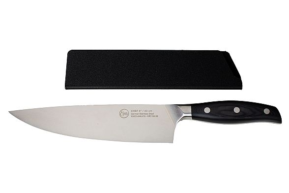Posee una sólida funda que protege toda la hoja para prevenir daños en su filo y hacia otros utensilios.