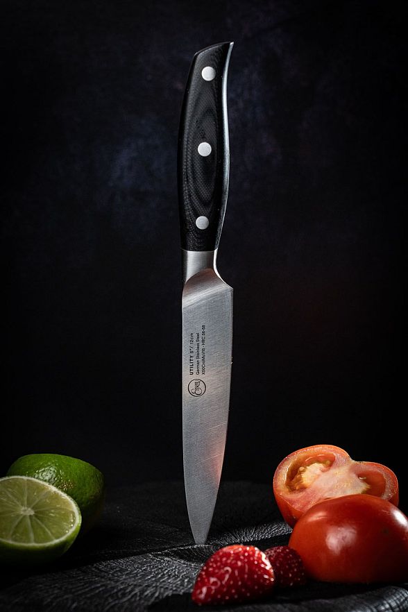 El cuchillo Utilitario es una herramienta de precisión para tareas más específicas. Es de uso versátil, como el cuchillo Chef, pero más pequeño.