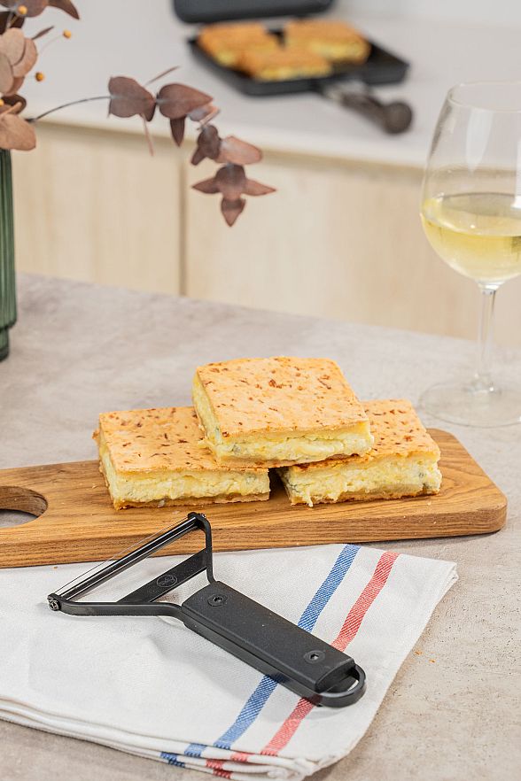 Preciso, resistente y versátil. Permite cortar quesos blandos, semiduros, manteca y dulces de forma pareja y sin esfuerzo.